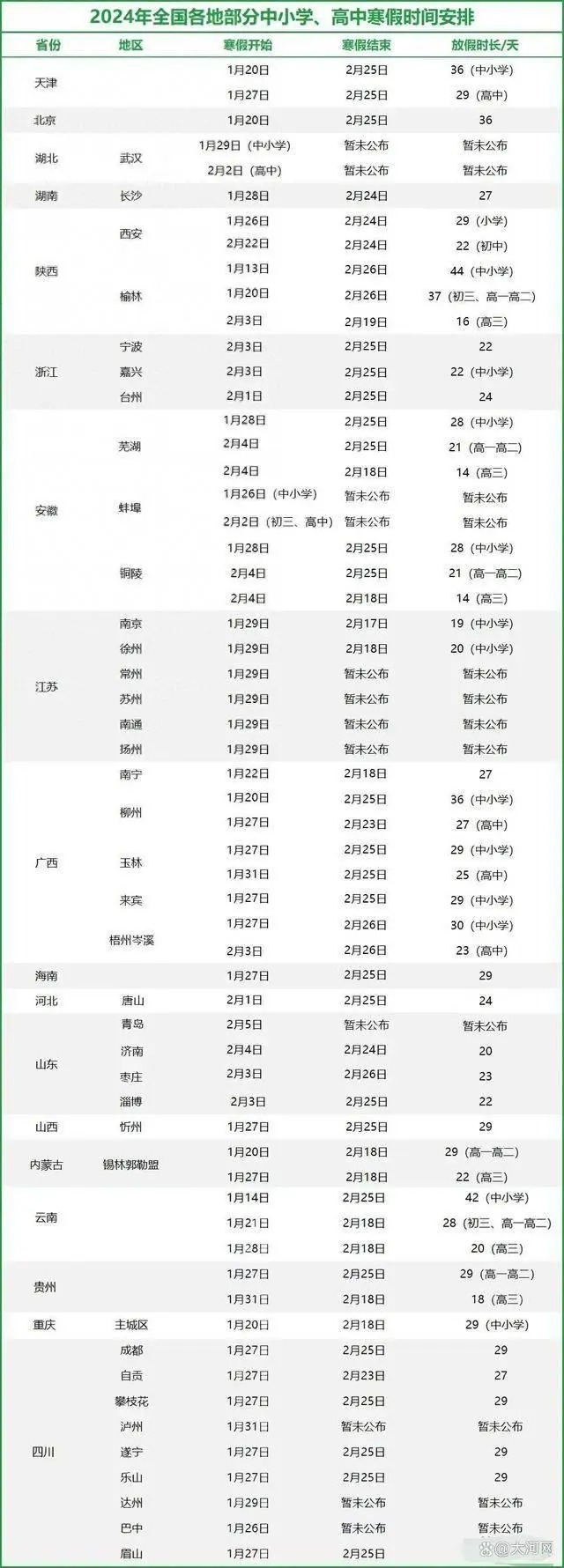 需要注意的是,以上僅為部分省份地區統計,內容僅供參考,具體放假時間請以當地教育局公布時間為準。