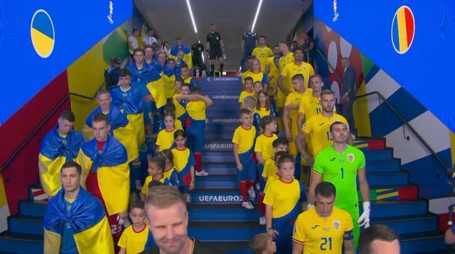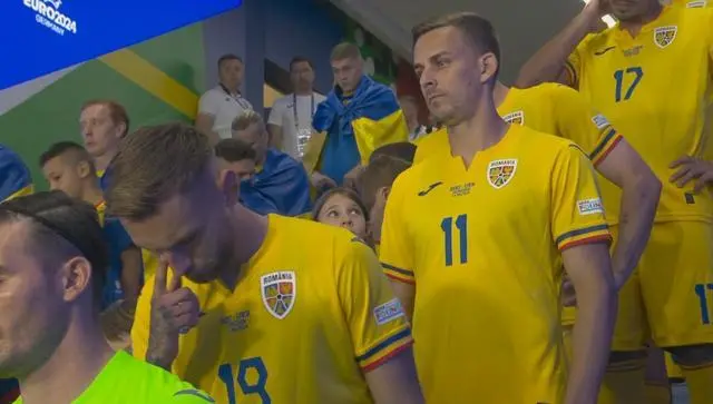 【#烏克蘭全隊身披國旗出場#】北京時間6月17日21:00點,歐洲杯小組賽E組第1輪,羅馬尼亞vs烏克蘭的比賽在慕尼黑安聯球場進行,烏克蘭全隊身披國旗出場,羅馬尼亞全隊則正常出場。