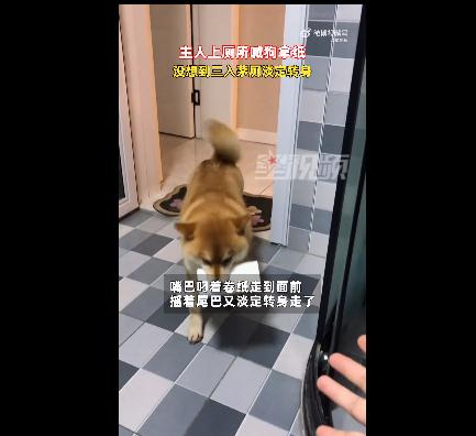 結果最后狗狗還是轉身離去,只留下主人在衛生間抓狂。