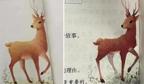 浙江臨海的小學生陳一逸在預習三年級下學期的語文書時,看到課文《鹿角和鹿腳》,發現文章的配圖和內容不符合。于是陳一逸和媽媽寫信給人民教育出版社,希望換一張課文貼圖。出版社回信稱,課文選自《伊索寓言》,未說明故事發生的地點。但就在上周,母子倆發現新書發下來后,小鹿身上的斑點沒了!