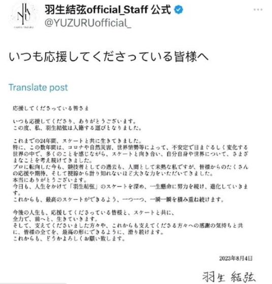 最后,讓我們再次向羽生結弦送上最真誠的祝福。愿他的婚姻幸福美滿,愿他的人生之路一直充滿陽光和快樂。無論是在運動場上還是在日常生活中,他都將繼續成為我們心中最偉大的花滑運動員。