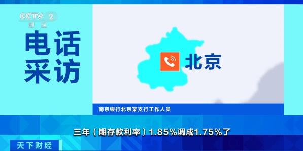 南京銀行北京某支行工作人員:上周五,三年期存款利率1.85%調成1.75%了。