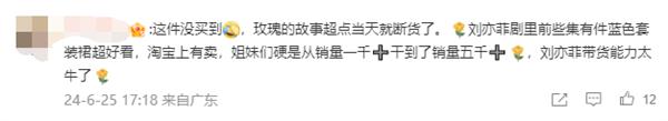 有網友表示:" 行走的種草機 "" 第一反應也是搜同款,冷靜一下,一,我沒人家這顏值,二,這色調真的招蚊蟲 "" 我太機智了,看到這一集立馬打開橙色軟件,不熟悉這個牌子的尺碼當機立斷買了兩個碼,果然第二天就斷貨了 "" 玫瑰的故事超點當天就斷貨了。" 等等。