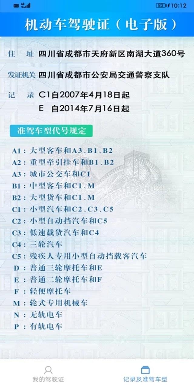 電子駕駛證由正頁和副頁兩部分組成。其中,正頁主要包括駕駛證基本信息、電子證生成時間、用于驗證信息的二維碼和一維碼等內容;副頁主要包括駕駛人住址、發證機關、駕駛記錄以及準駕車型代號規定等內容。主要特點有:
