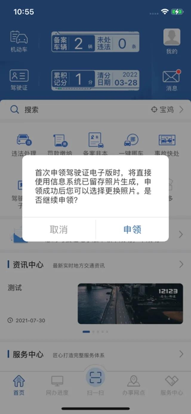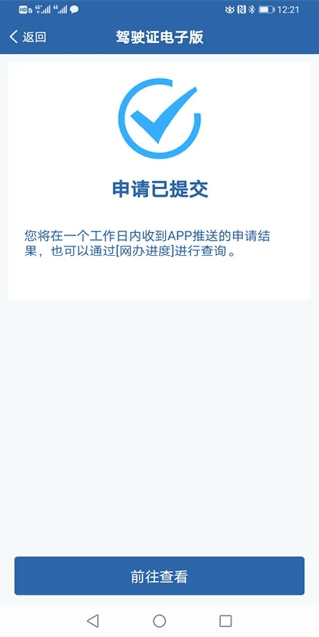 (三)使用相冊的證件照片申領。對信息系統無符合要求留存照片的,除拍照方式提交電子照片外,還可以在手機相冊中選擇證件照片,用于申領電子駕駛證。提交證件照片后,公安機關交通管理部門將在1個工作日內進行審核,對符合要求的,“交管12123”APP將生成電子駕駛證,并推送申請成功信息。