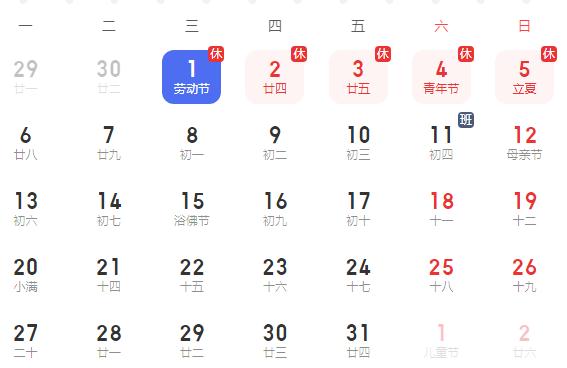 2024年5月放假共5天,主要是勞動節(jié)放假調(diào)休的5天。