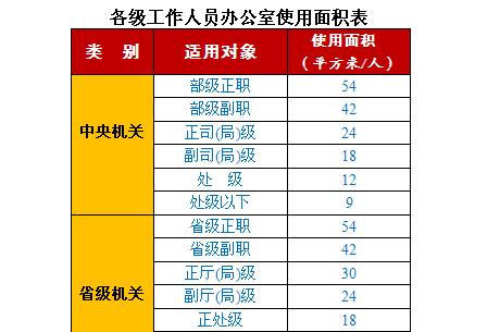 詳細信息可以參考中紀委發布的《黨政機關辦公用房建設標準》詳細網址:http://m.ccdi.gov.cn/content/df/d6/908.html。