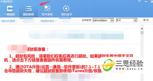 在進入到該助手軟件的窗口面板后,我們找到“越獄助手”這個選項,并點擊打開它。