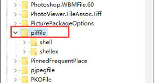 5、接著回到注冊表,找到“HKEY_CLASSES_ROOT”下的“piffile”文件夾。