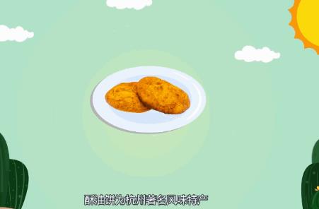 酥油餅為杭州著名風味特產,用上等白面粉攙和白糖,用花生油煎制而成。其餅色金黃,松脆可口,頗具風味。