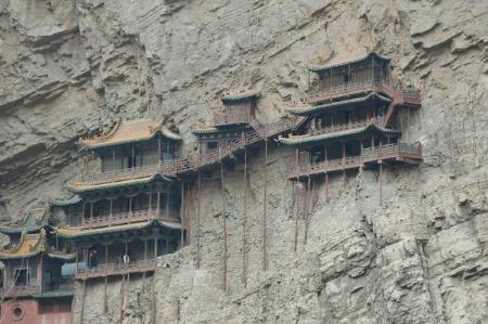 4、懸空寺最經典的一句:懸空寺凌空而建,嵌入懸崖之中,令人驚嘆不已。