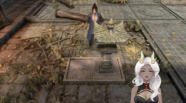 2、在這里先對話,再去收集道具,往前走燈籠旁邊有個千年靈芝,左邊石燈籠左邊紅燈籠的左邊有個包袱,打開獲得赤蝎粉圖紙;